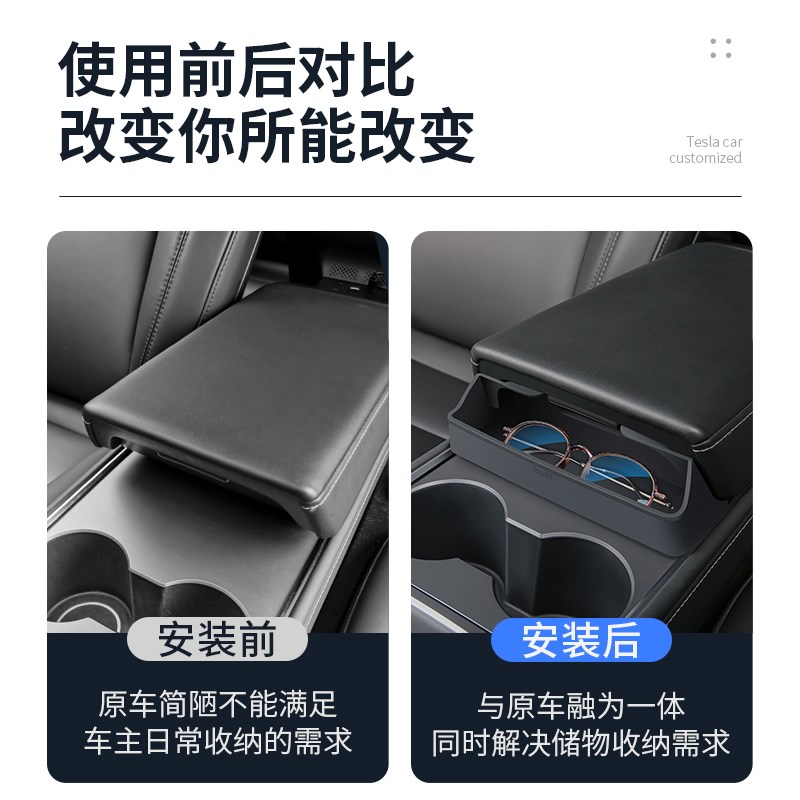 优顺盈适用特斯拉Model3Y中控F储物盒扶手箱矽胶置物架配件 - 原语生设计馆01