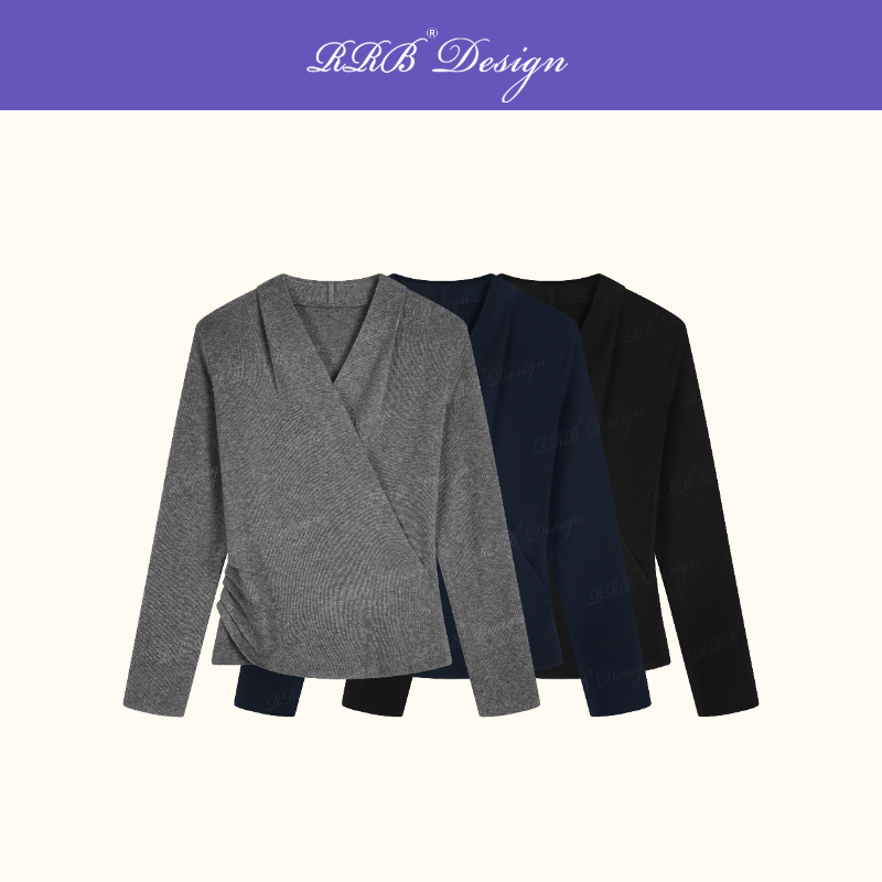 RRB Design 绵羊毛混纺宽松交叉V领设计感显瘦长袖套头针织衫 - 梁夜 RRB
