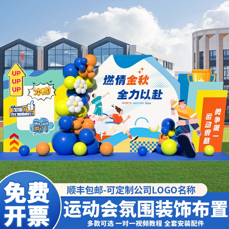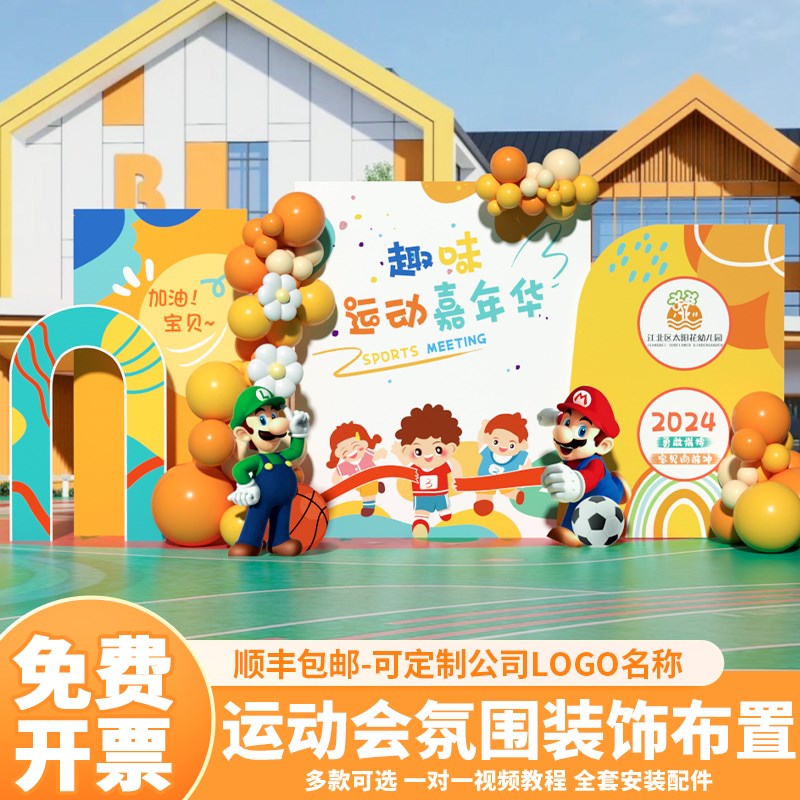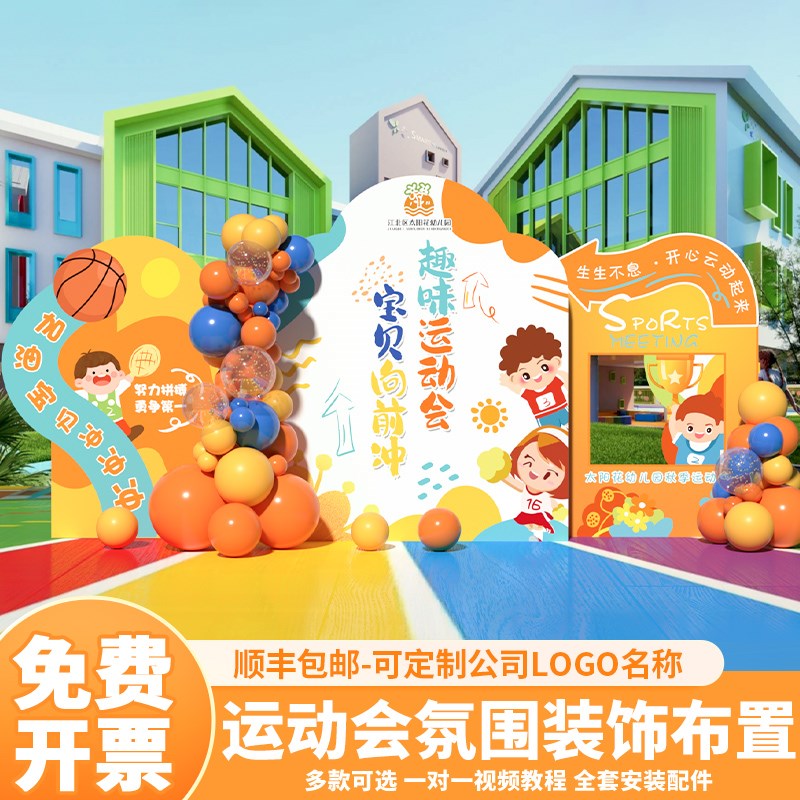 运动会场景布置装饰氛围亲子趣味幼儿园活动道具背景W墙kt展板定