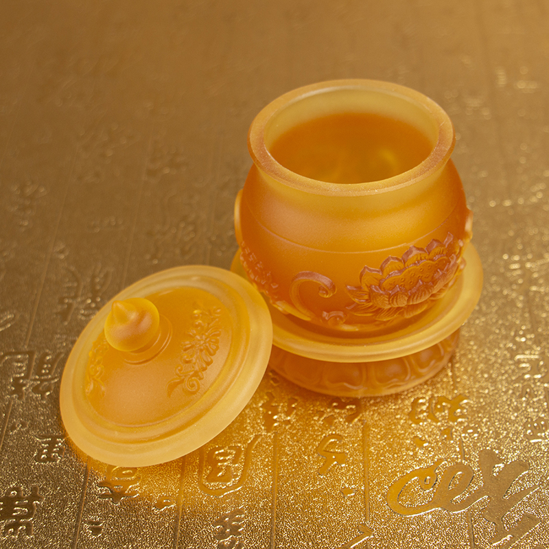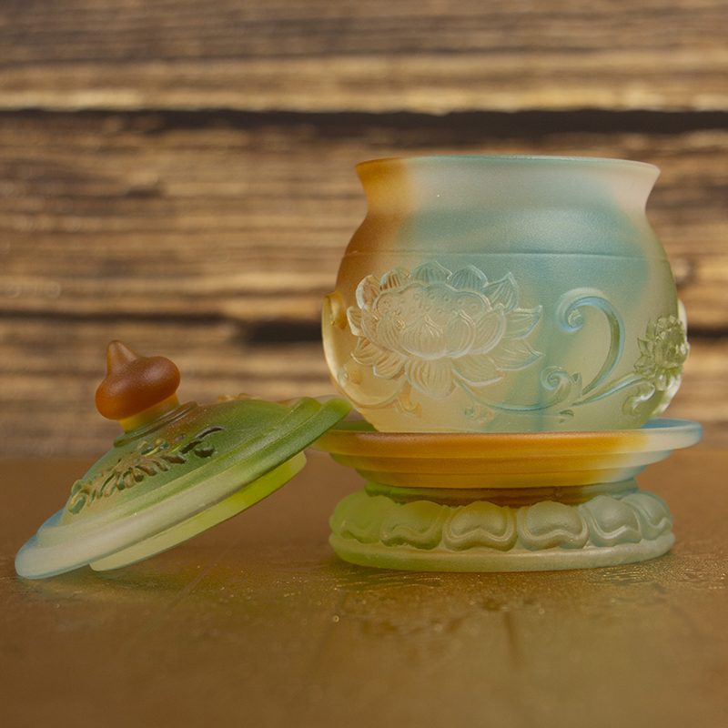 琉璃供水杯圣水杯家用招财莲花净水杯供杯 - 梵雨堂