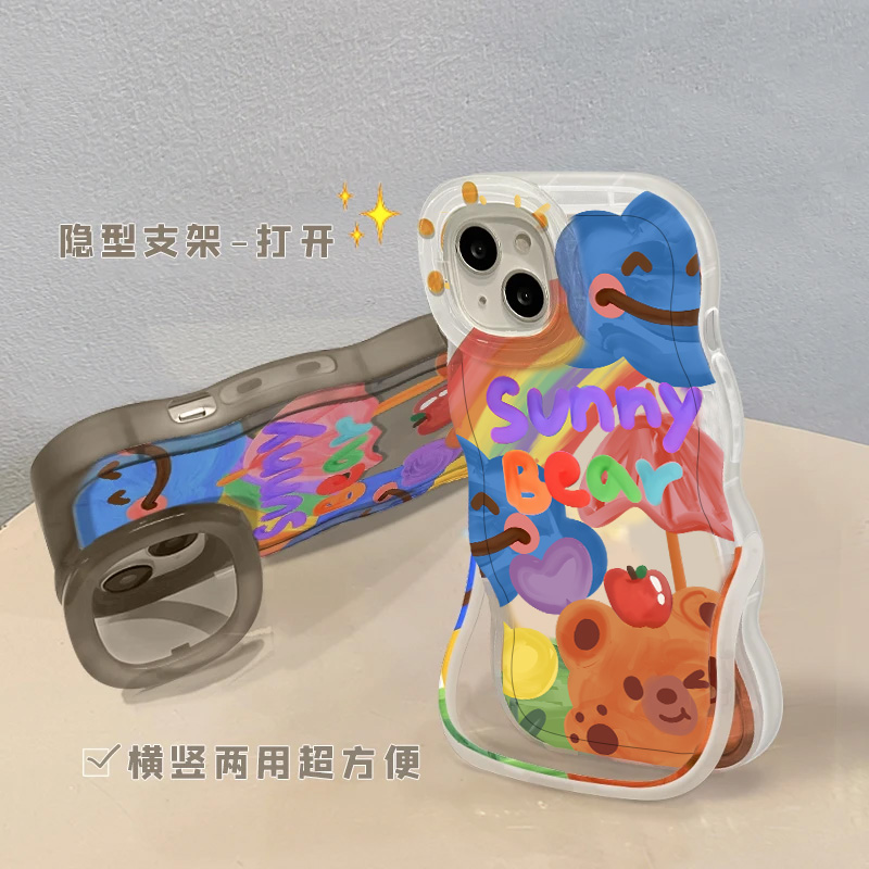满屏涂鸦熊适用苹果16promax手机壳iphone14pro新款13创意双支架12可爱11保护套15promax全包防摔15plus卡通