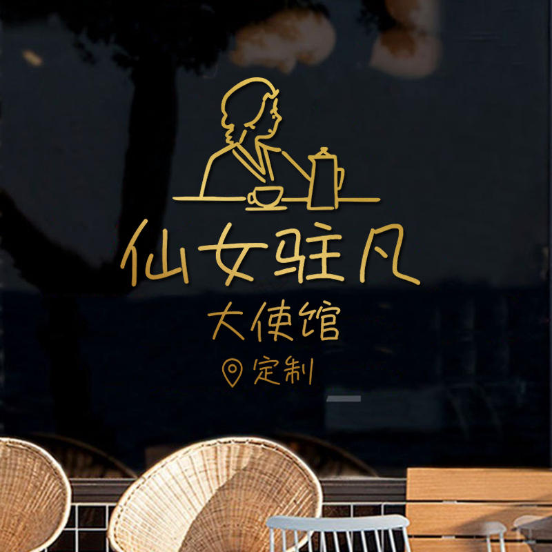 网红奶茶店墙壁装饰布置美容院美甲店铺玻璃门贴纸橱窗背景墙创意