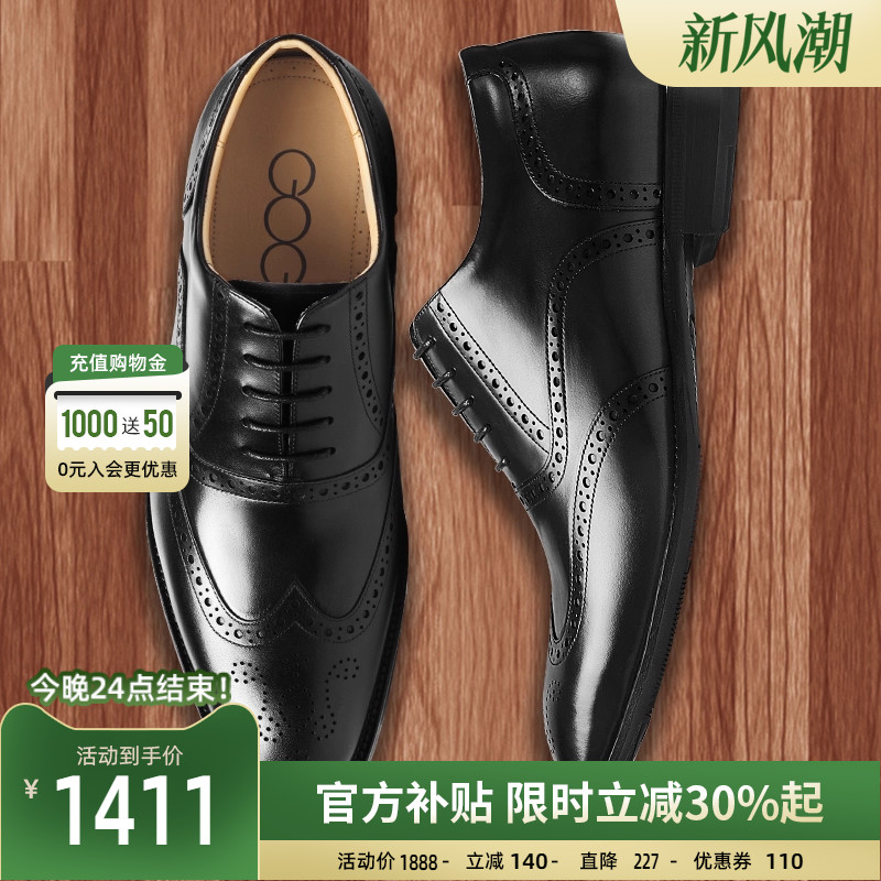 高哥增高鞋男士新郎布洛克真皮鞋英伦商务正装结婚鞋隐形内增高鞋 - 高哥增高鞋旗舰店