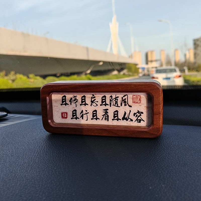 创意新款诗词实木摆台汽车u内中控台饰品古风装饰格言中控车载摆