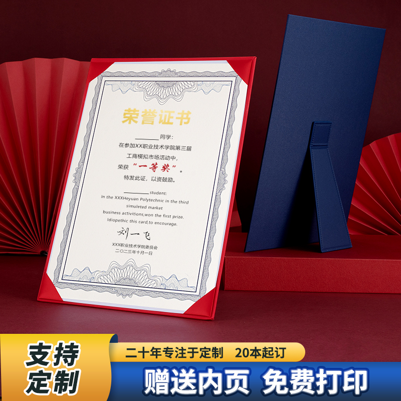 珠光立体摆台式荣誉证书获奖奖状外壳结业证书培训证书聘书授权书感谢信优秀员工表彰定制可打印定制证书封套 - 大成文具专营店