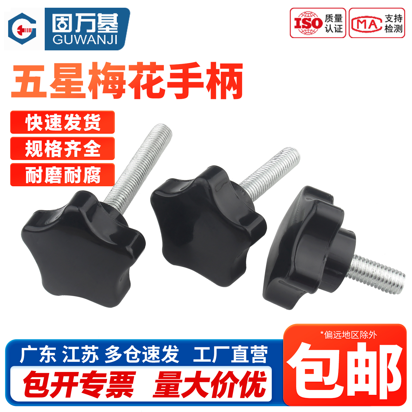 梅花手柄螺丝五星型胶木手拧螺栓星形螺丝钉机械手柄把手M6M8M10 - 固万基五金紧固件批发
