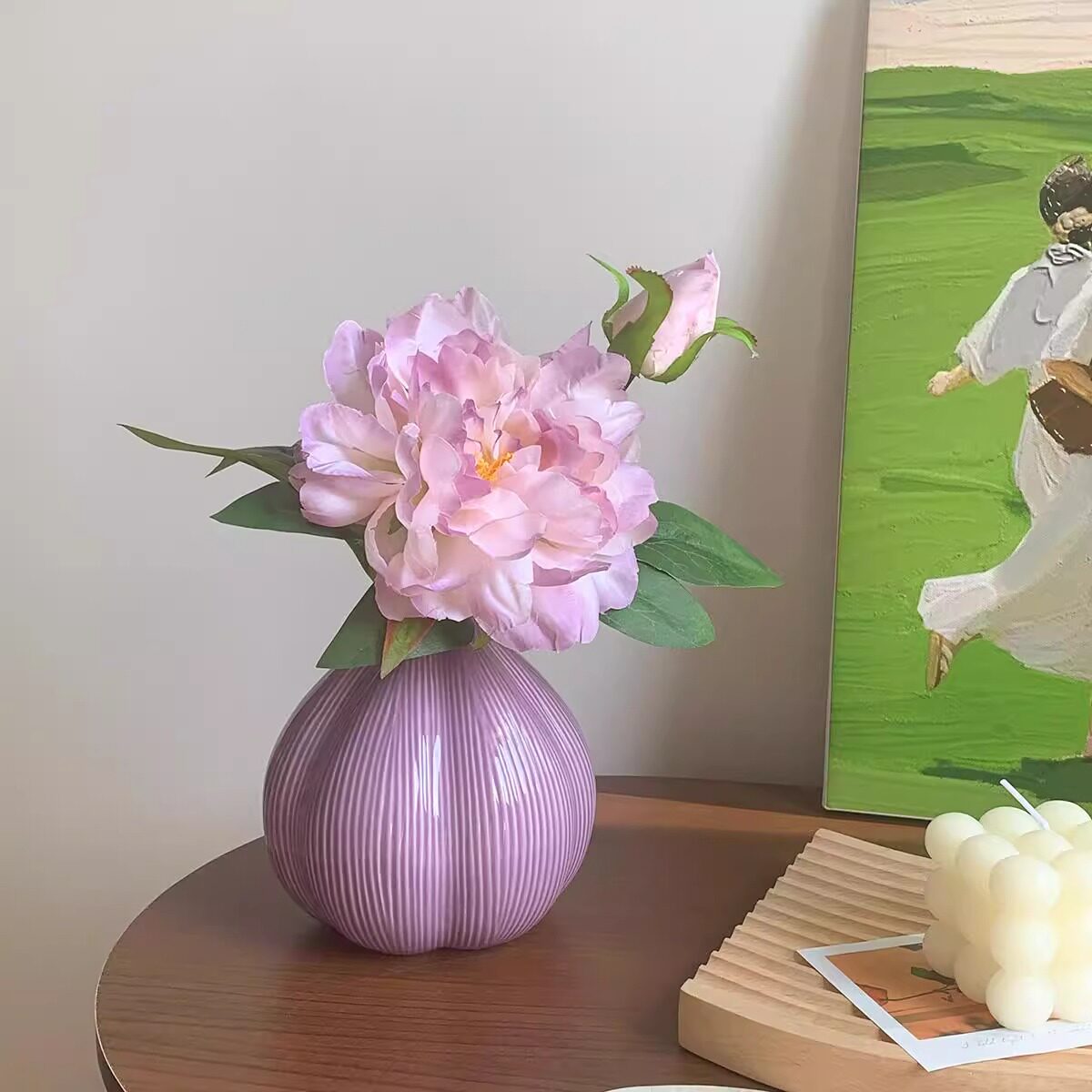 紫牡丹花仿真花客厅轻奢装饰床头柜高级感陶瓷摆件家居摆件陶瓷瓶 - 林呈小店