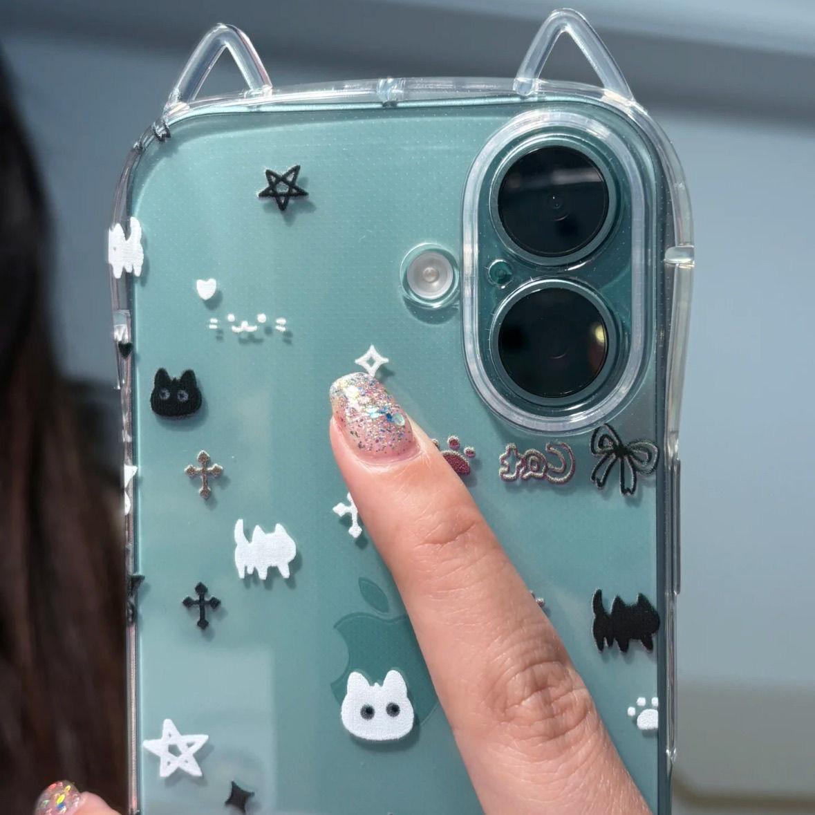 斑点星星猫咪适用iPhone16promax猫耳朵透明苹果15promax手机壳硅胶软壳14pro立体全包13/12防摔可爱11保护壳 - 卖个壳子