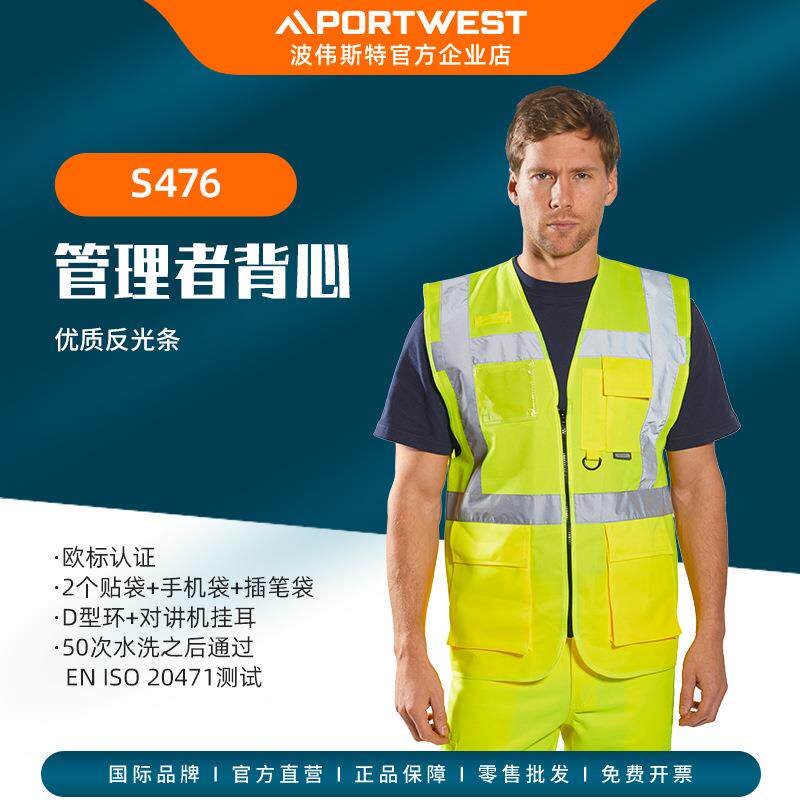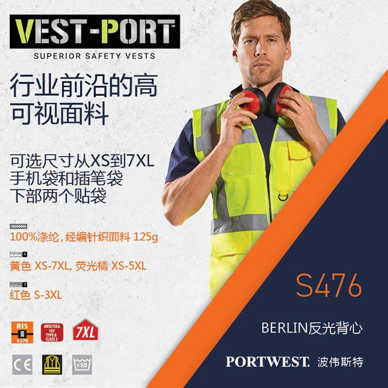 Portwes透t气工心程建筑黄色高服反光背马甲高可视NFF环卫夜行衣S