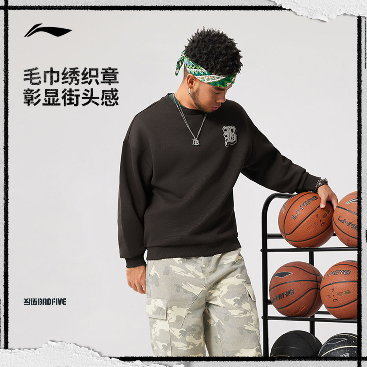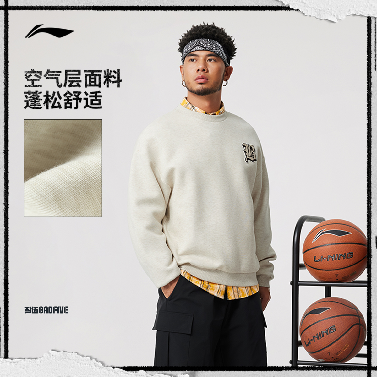 李宁反伍BADFIVE卫衣男士冬季套头衫舒适长袖圆领男装针织运动服 - 李宁官方旗舰店
