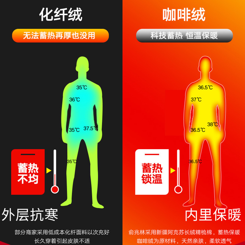俞兆林保暖内衣套装男士加绒加厚咖啡绒贴身打底女棉毛套秋冬情侣 - 浙江兆林实业内衣企业店
