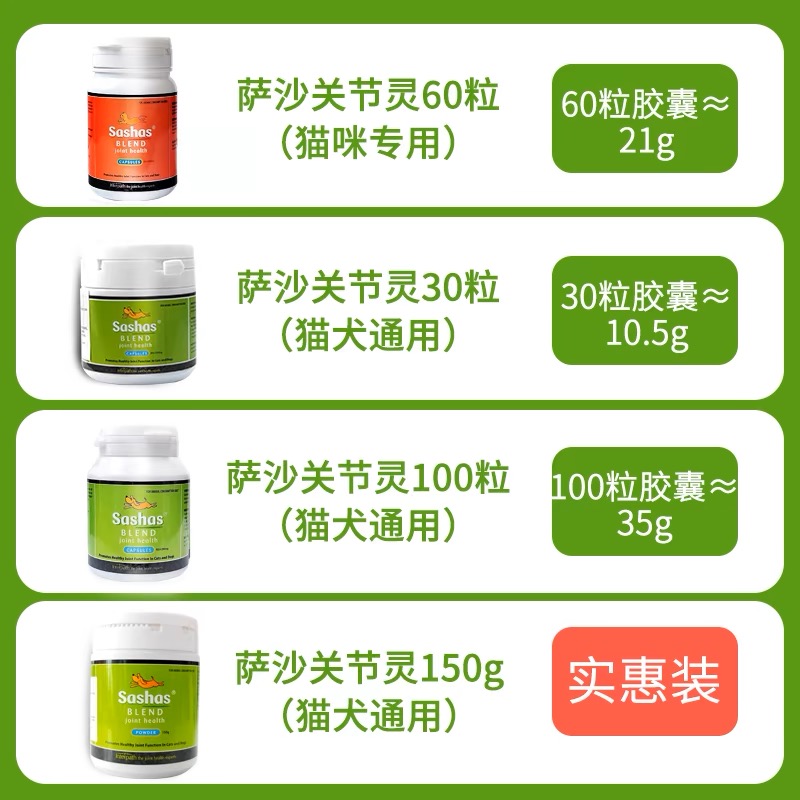 sashas萨沙关节灵粉剂胶囊 狗狗猫咪关节宝宠物软骨素髌骨髋关节 - 布兜家宠物用品