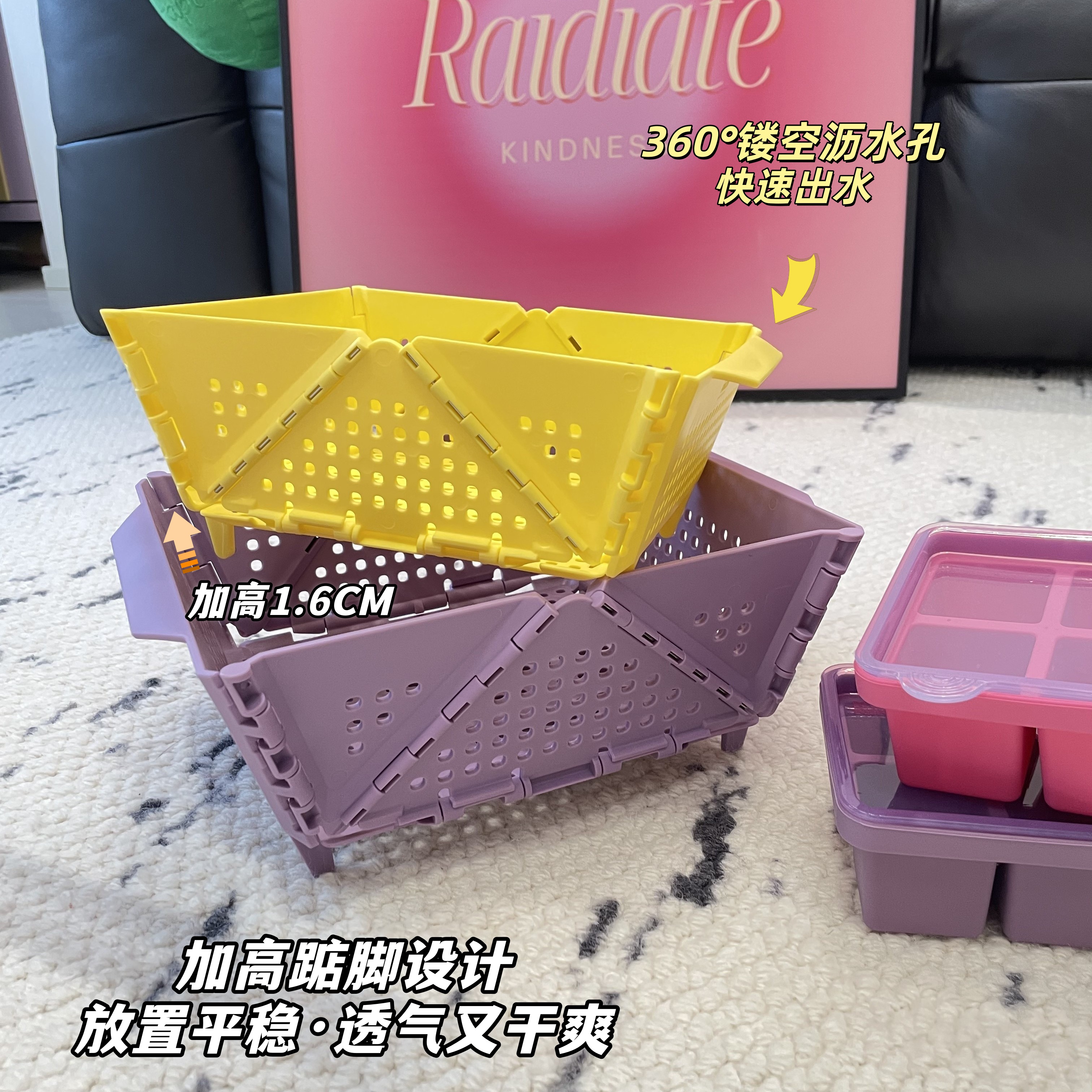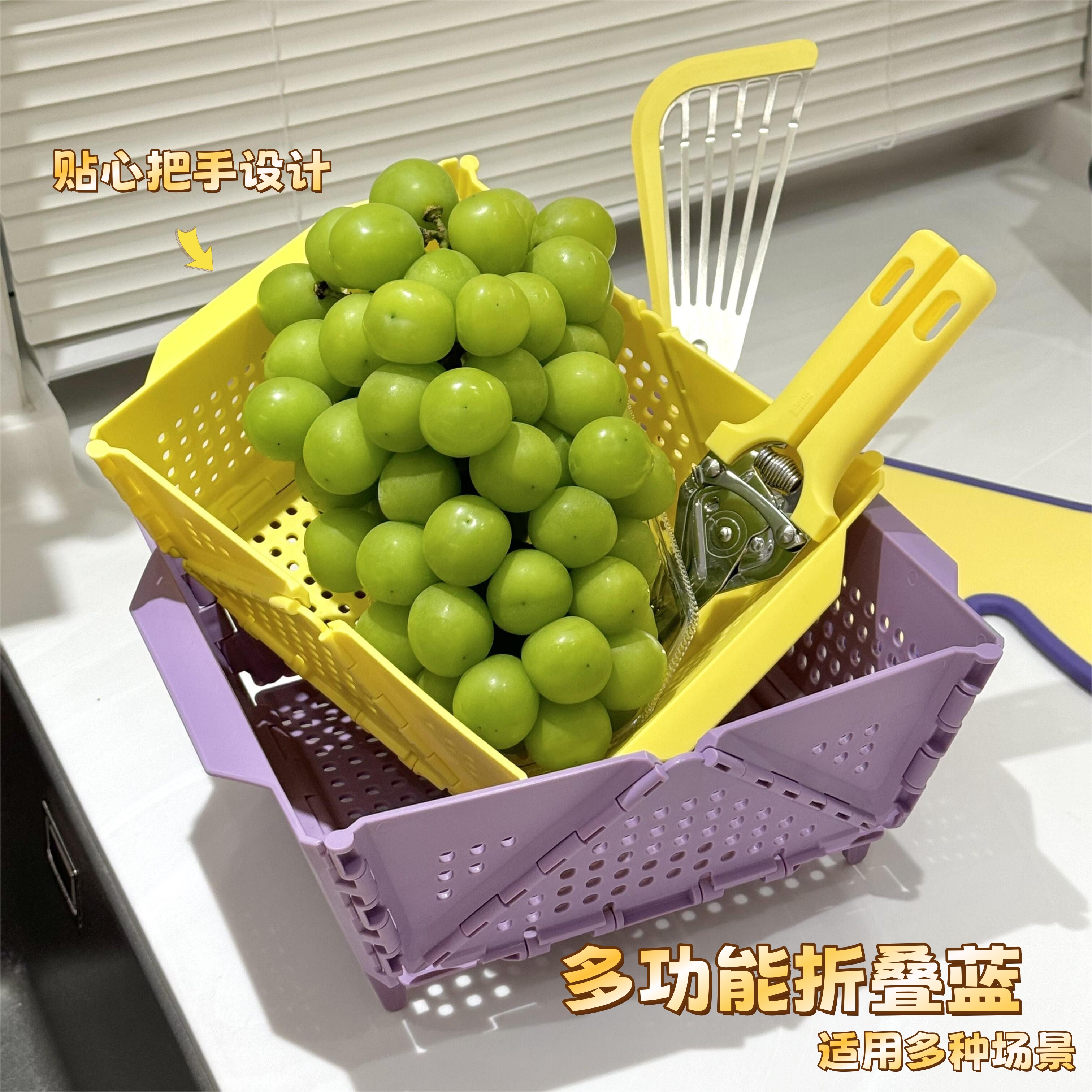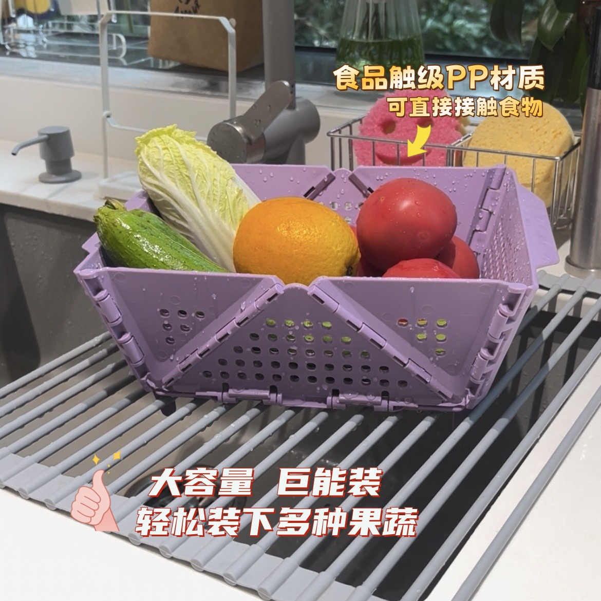 厨房食品级可折叠洗菜盆家用洗水果镂空沥水篮客厅桌面果蔬收纳筐 - 窝居 专注学生宿舍用品