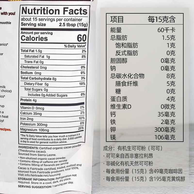 美国Navitas Organic Cacao Powder天然有机生可可粉无糖生酮冲饮 - 福颐合食品旗舰店