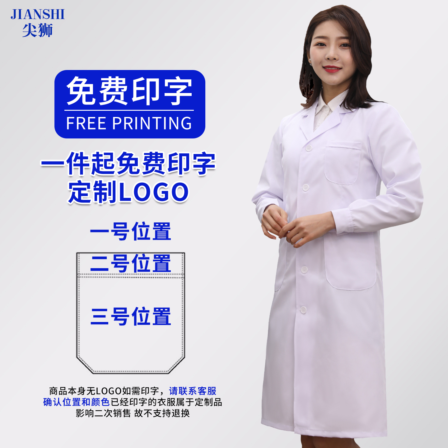 白大褂长袖男医生大学生实验室实验服医用工作服护士服隔离衣通用 - 尖狮旗舰店
