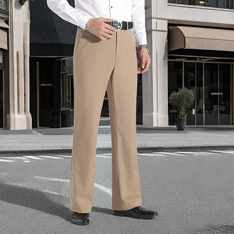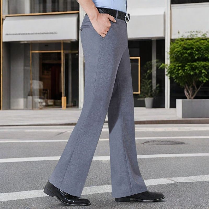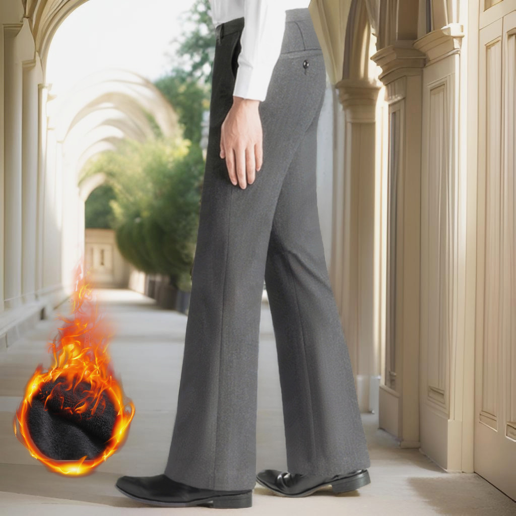 秋冬高档微喇裤男士垂感阔腿休闲裤子弹力加绒厚款男装微喇叭西裤 - YueMoYi 林王男装