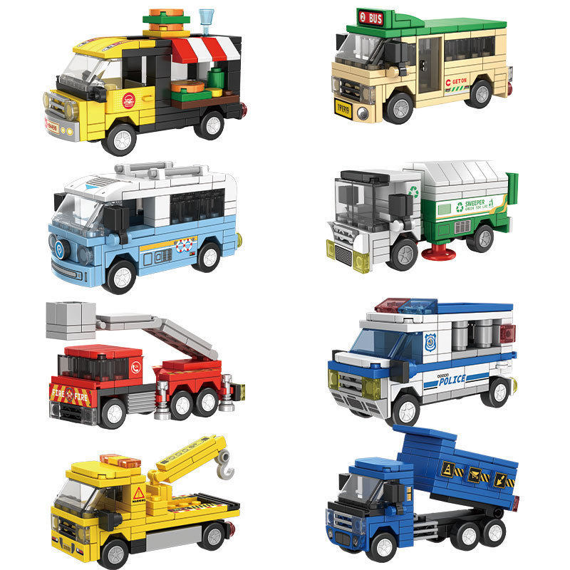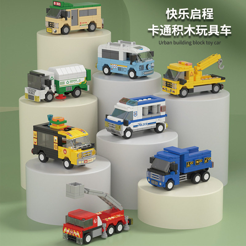 城市汽车积木消防车警车工程车公交车环卫清洁车救护车拼装玩具 - 奇妙积木城