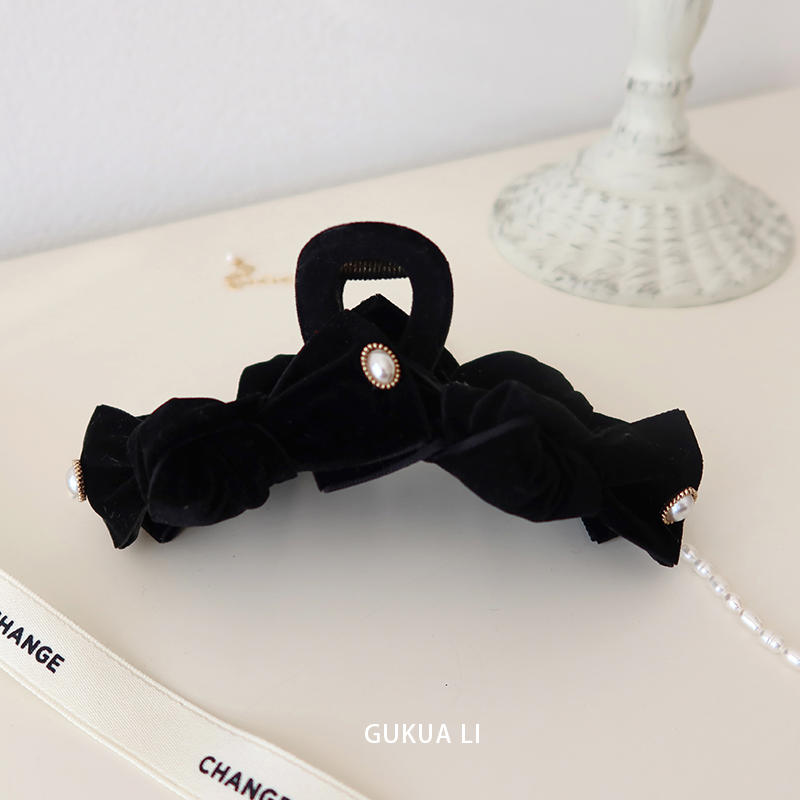 GUKUALI原创 黑色糖果丝绒抓夹复古发饰后脑勺鲨鱼夹发夹发饰头饰 - GUKUA LI 小姐设计品牌