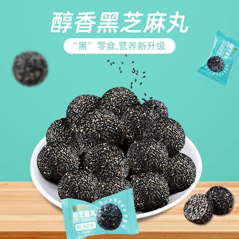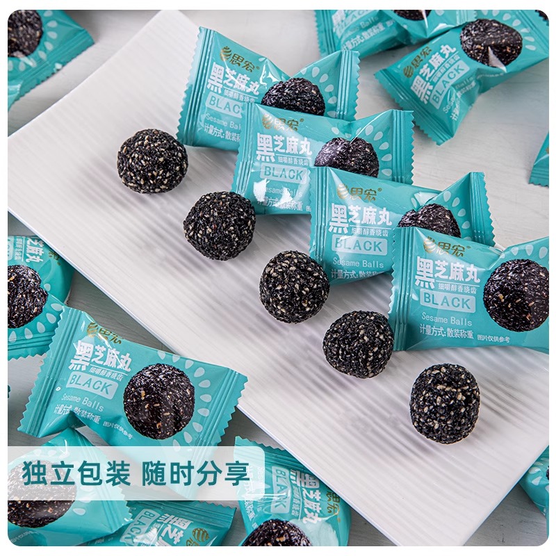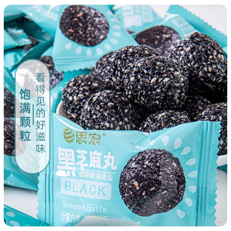 思宏黑芝麻丸蜂蜜熟黑芝麻球孕妇儿童开袋即食糕点休闲小吃解馋 - 网红的零食