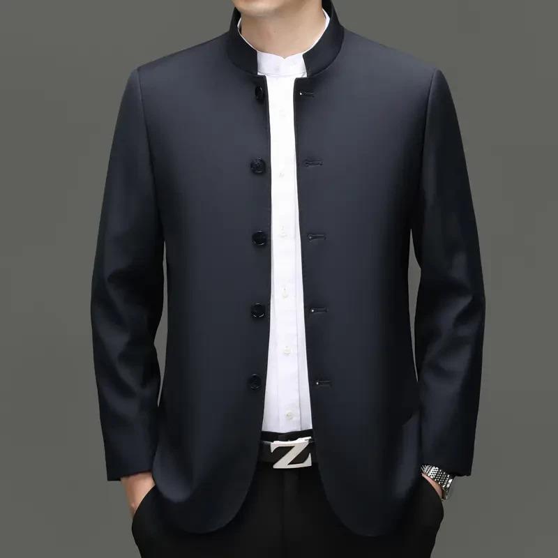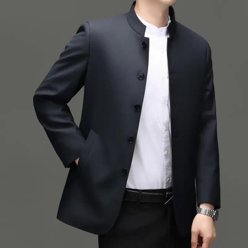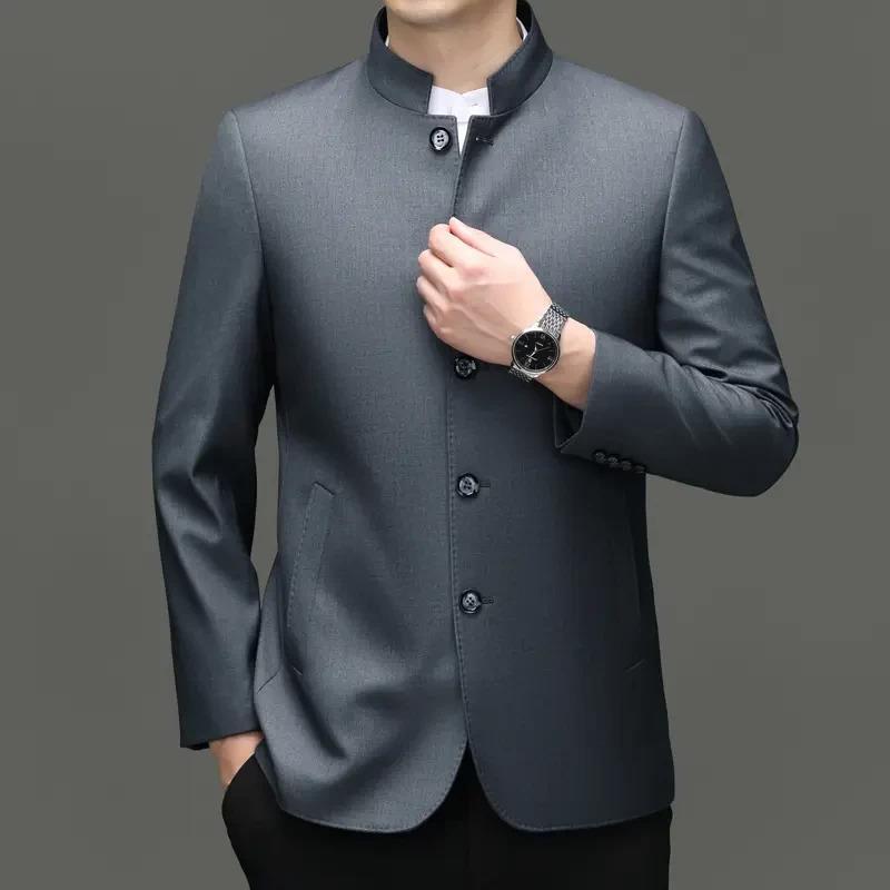 皮尔卡丹高端男士商务休闲中山装立领夹克春秋季中老年爸爸装外套 - 皮尔 卡丹男装官营店