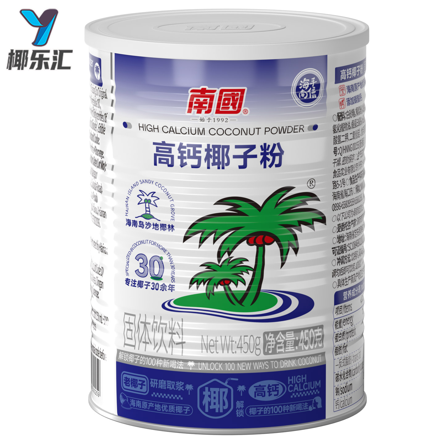 海南特产 南国高钙椰子粉450g克×2罐 速溶型椰子粉 - 椰乐汇食品专营店