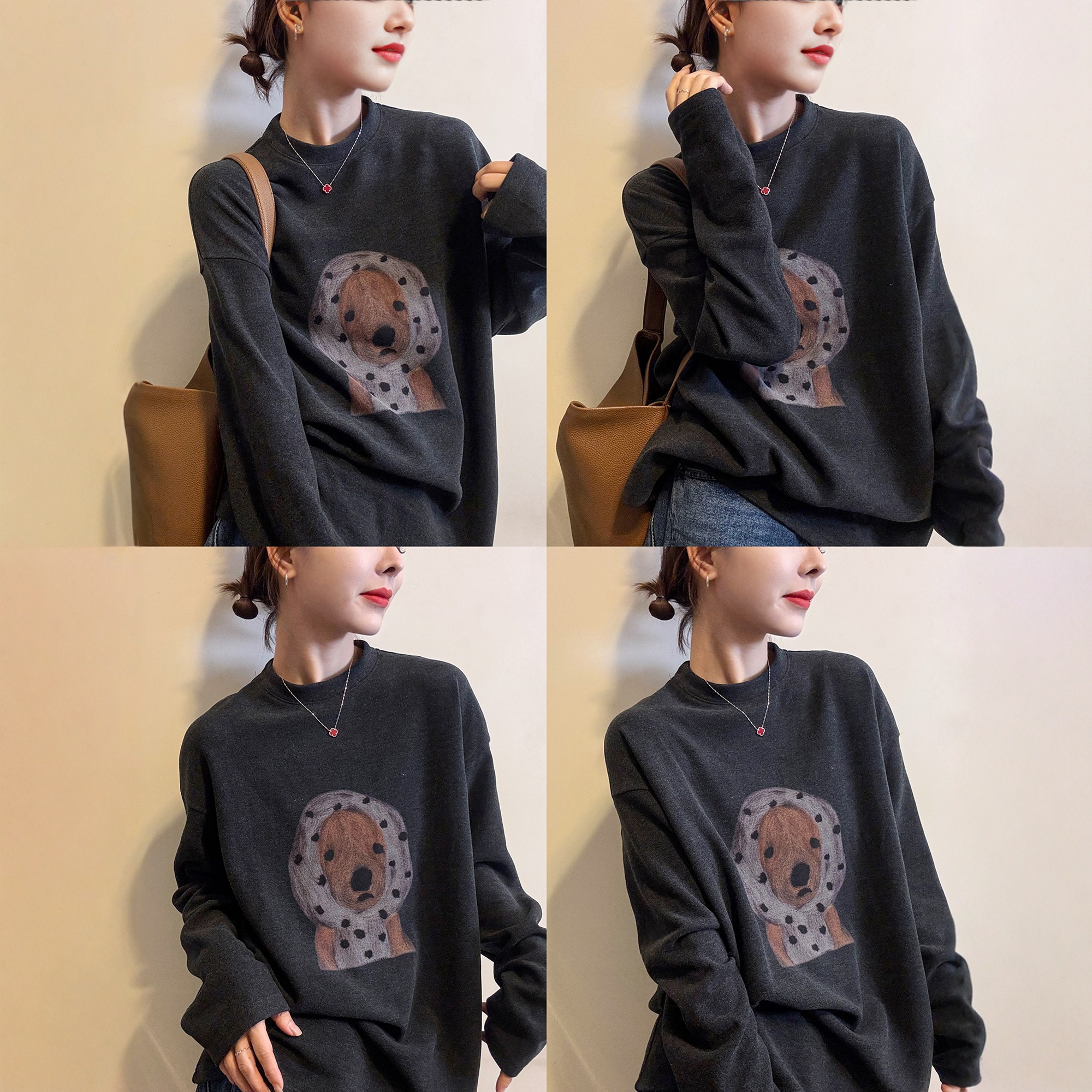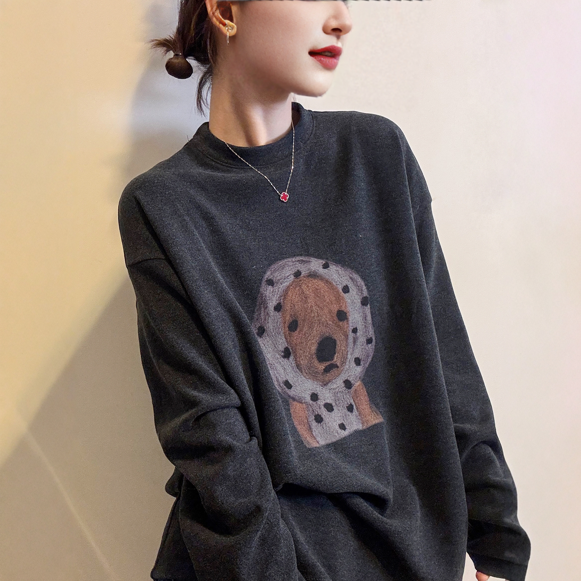 您的位置:他他商城  >   >  小狗印花磨毛加绒T恤女欧洲站2025冬装新款欧货女装加厚打底衫潮