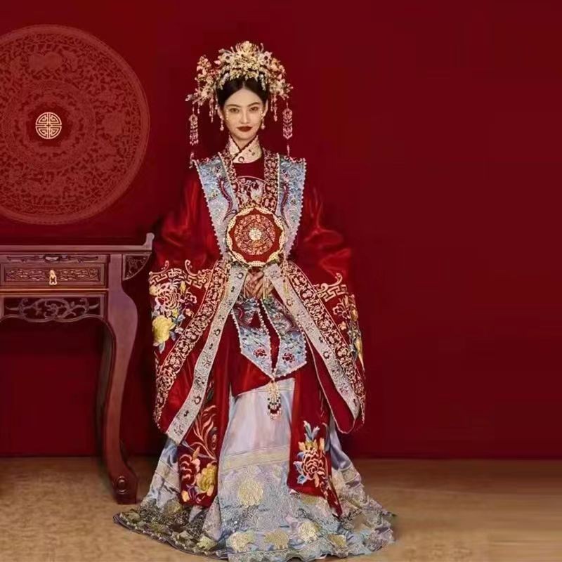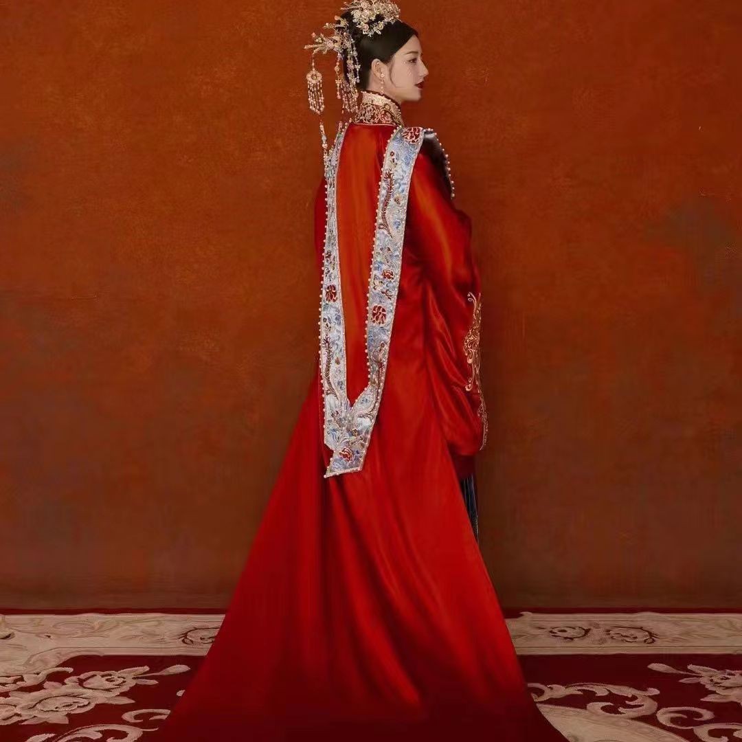 中式婚礼婚服出租明制汉服凤冠霞帔拖尾婚礼仪式走秀结婚古装嫁衣