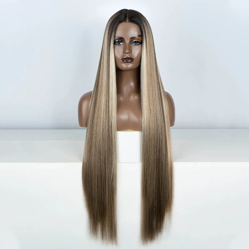 Synthetic Lace Front Wigs Highlight Brwon Blonde Black Wig F - Global wig
