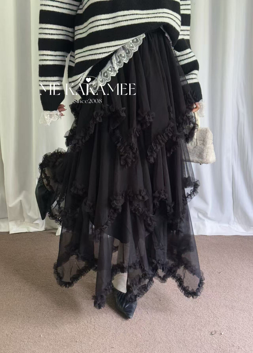 ME KAKAMEE冬新品压褶花边不规则设计内里加绒纱裙半身裙长裙917 - LE studios