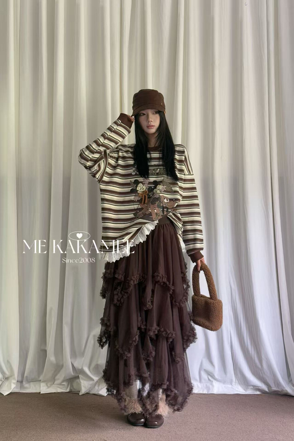 ME KAKAMEE冬新品压褶花边不规则设计内里加绒纱裙半身裙长裙917