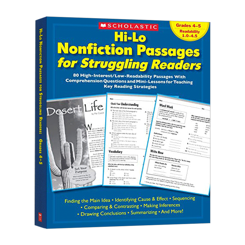 英文原版 Hi-Lo Nonfiction Passages For Struggling Readers Grades 4-5 学乐阅读练习册 英文版 进口英语书籍儿童图书 - 大成文汇图书专营店