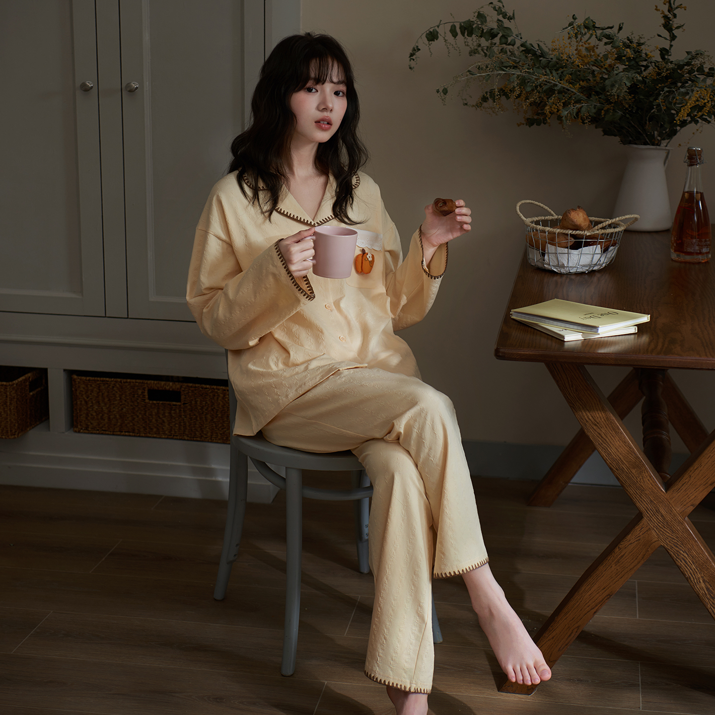 马克公主睡衣女春秋可爱奶黄纯棉长袖少女小众设计感可外穿家居服 - 马克公主旗舰店