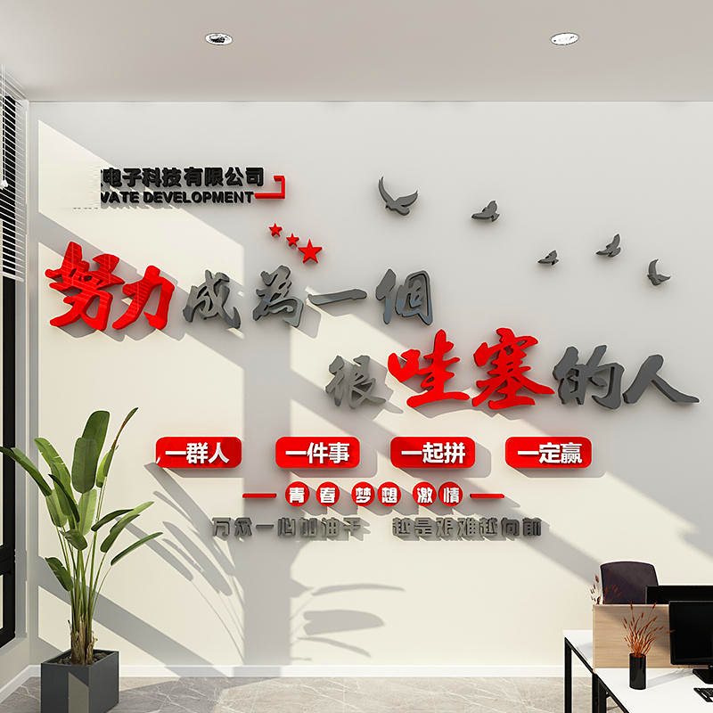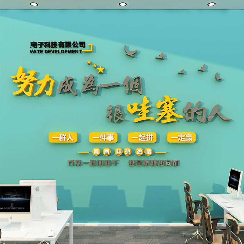 企业文化办公室布置墙面装饰公司形象背景墙设计团队励志标语墙贴 - 馨翔家居旗舰店
