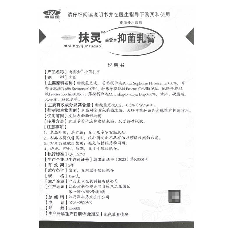 南云金一抹灵抑菌乳膏正品包邮