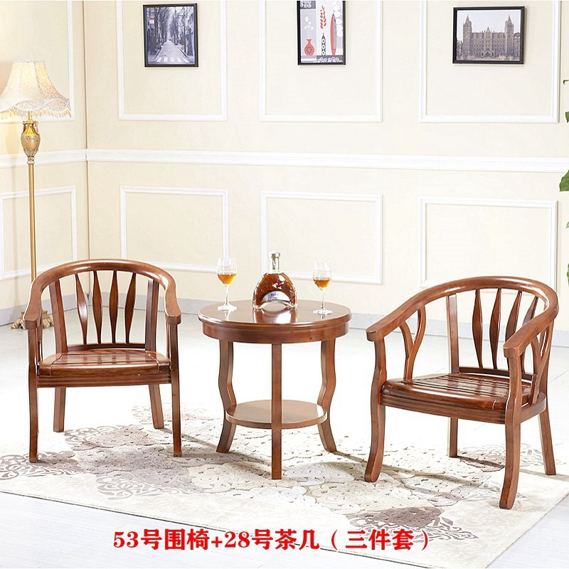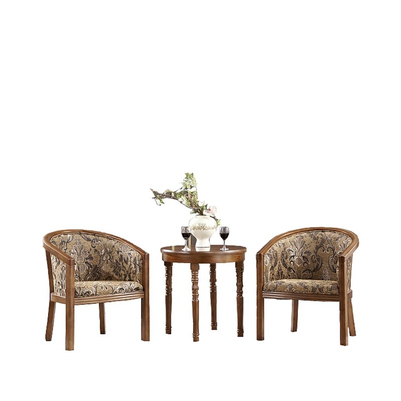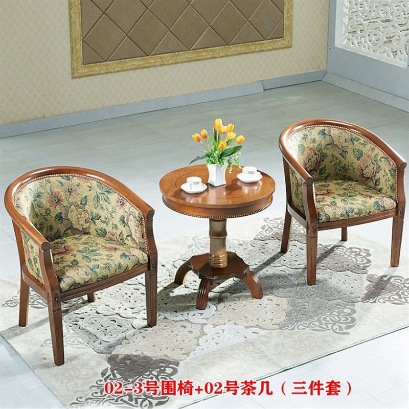宾馆用实木围椅三件旅店茶楼布艺休闲桌椅酒店茶几洽谈办公圈椅 - 湖海咖啡店