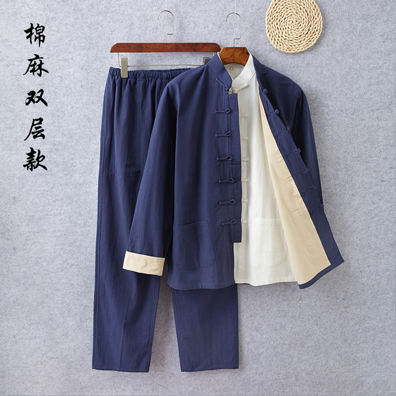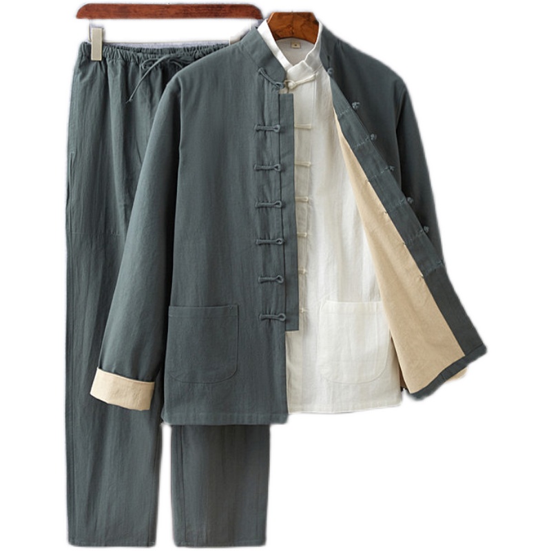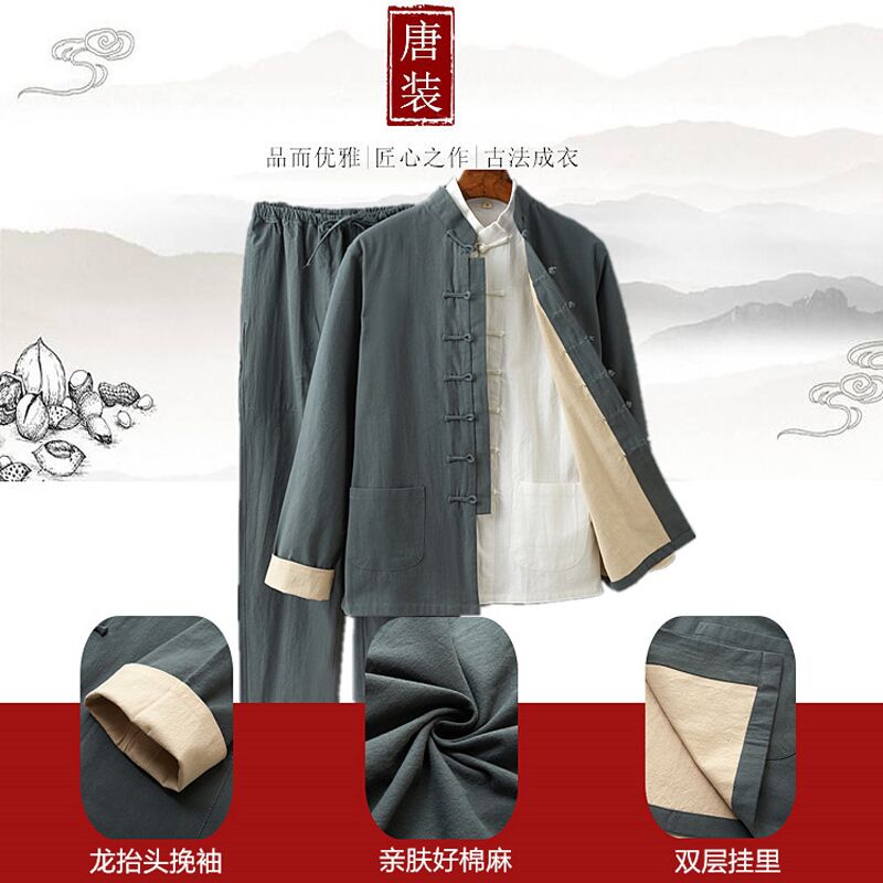 您的位置:他他商城  >   >  唐装男士套装春秋中国风青年复古亚麻长袖外套中式棉麻中山装汉服