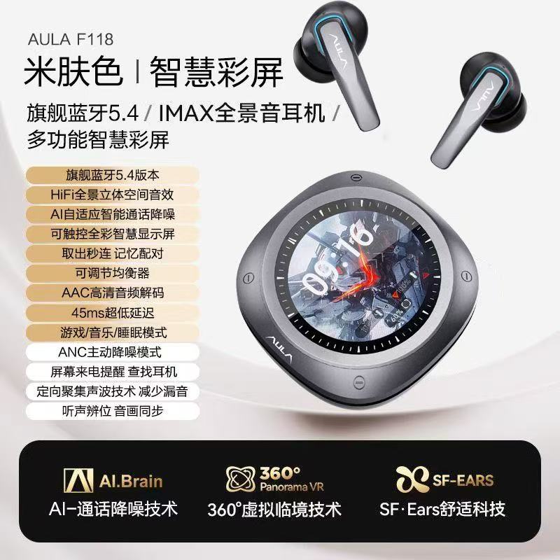 狼蛛F118 ANC主动降噪高清智慧彩屏触控运动游戏真无线蓝牙耳机 - 你永远的老朋友