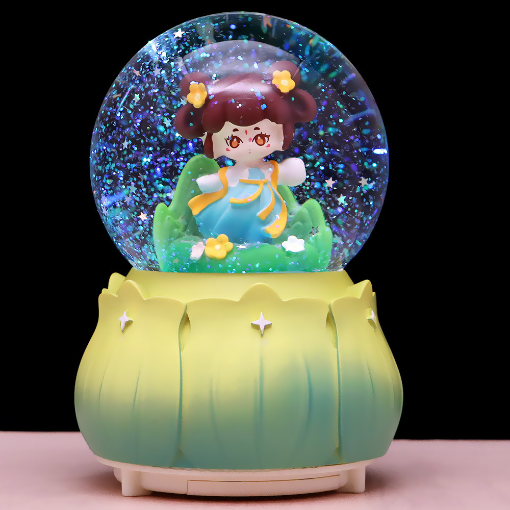 发光旋转飘雪花独角兽水晶球音乐盒女生八音盒男女童女友生日礼物