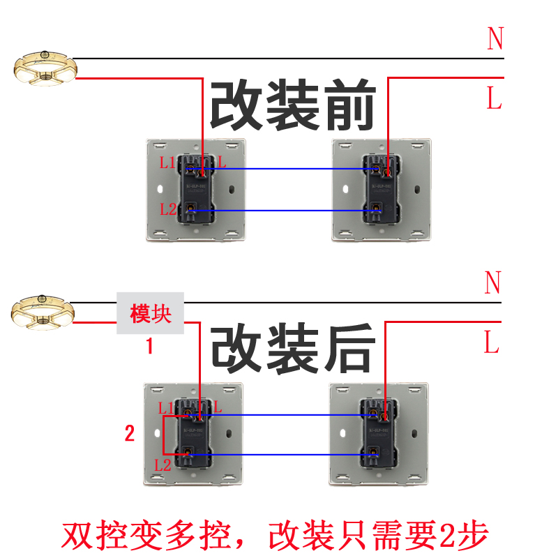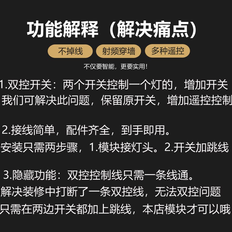 无线双控开关免布线双联双控改三控多控射频遥控开关灯控模块220V