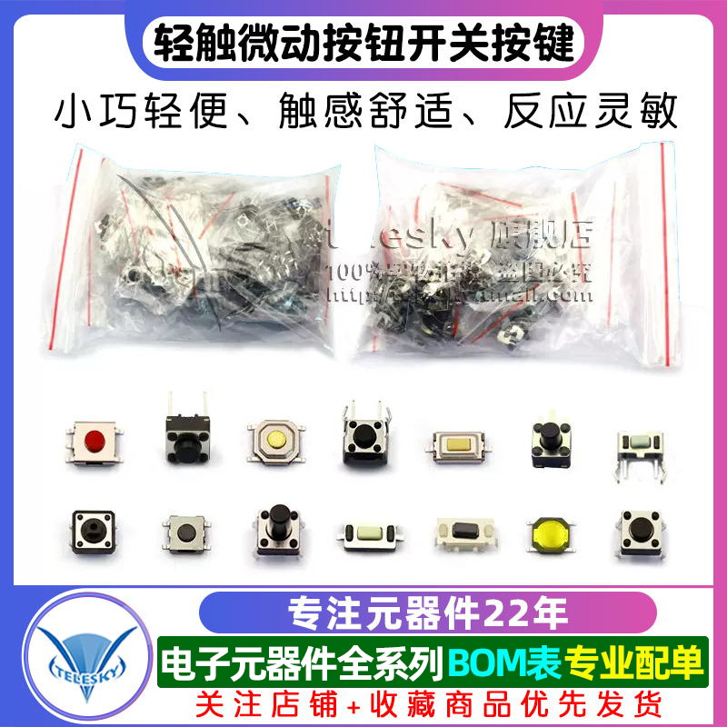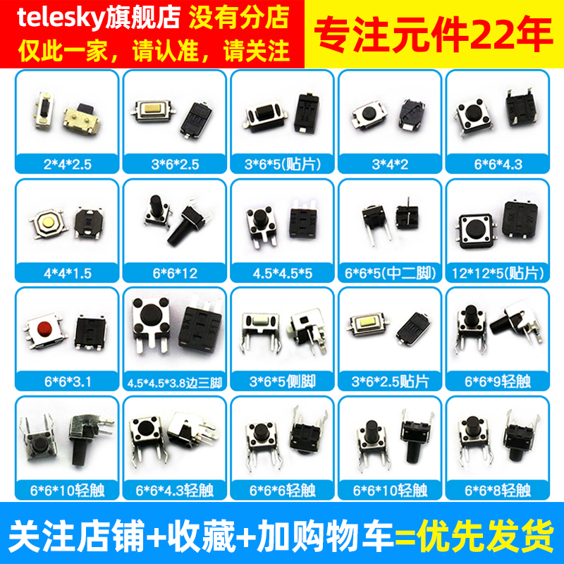 轻触开关包小按键开关微动开关包6*6*5 开关按钮混装25种7种12种 - telesky旗舰店