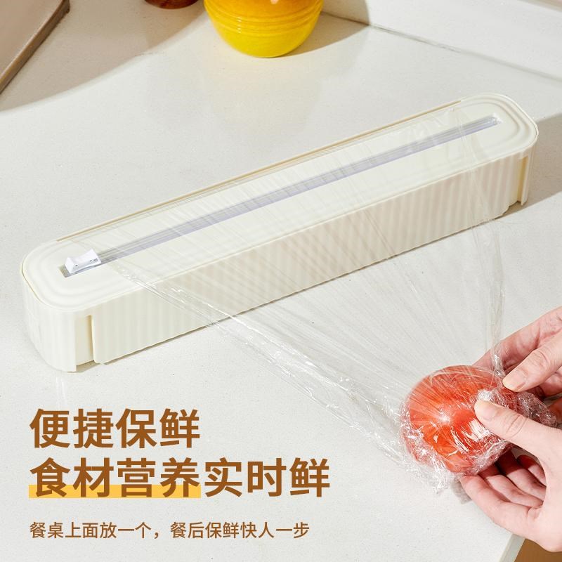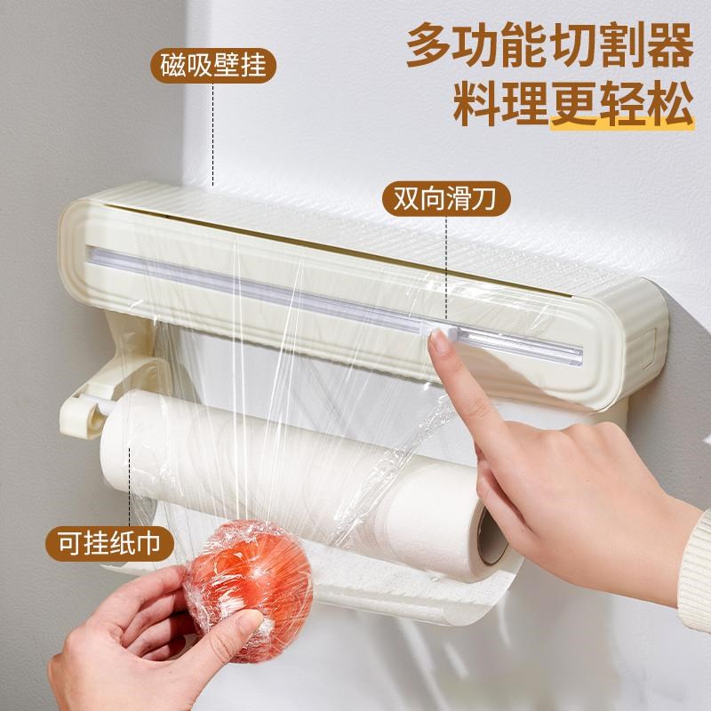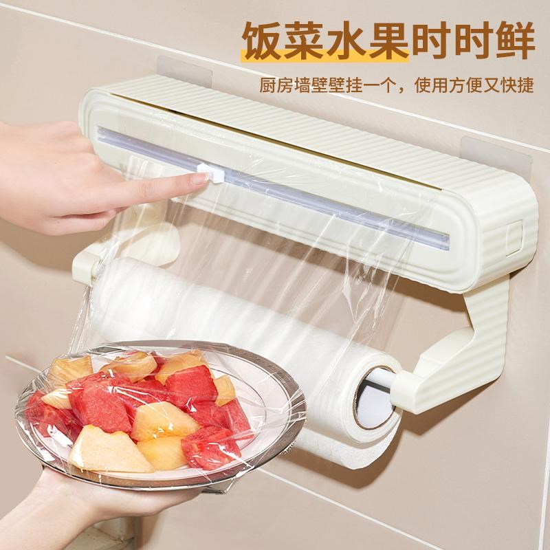 保鲜膜自带切割器厨房保鲜膜切割盒F子可壁挂免打孔双向滑片切割