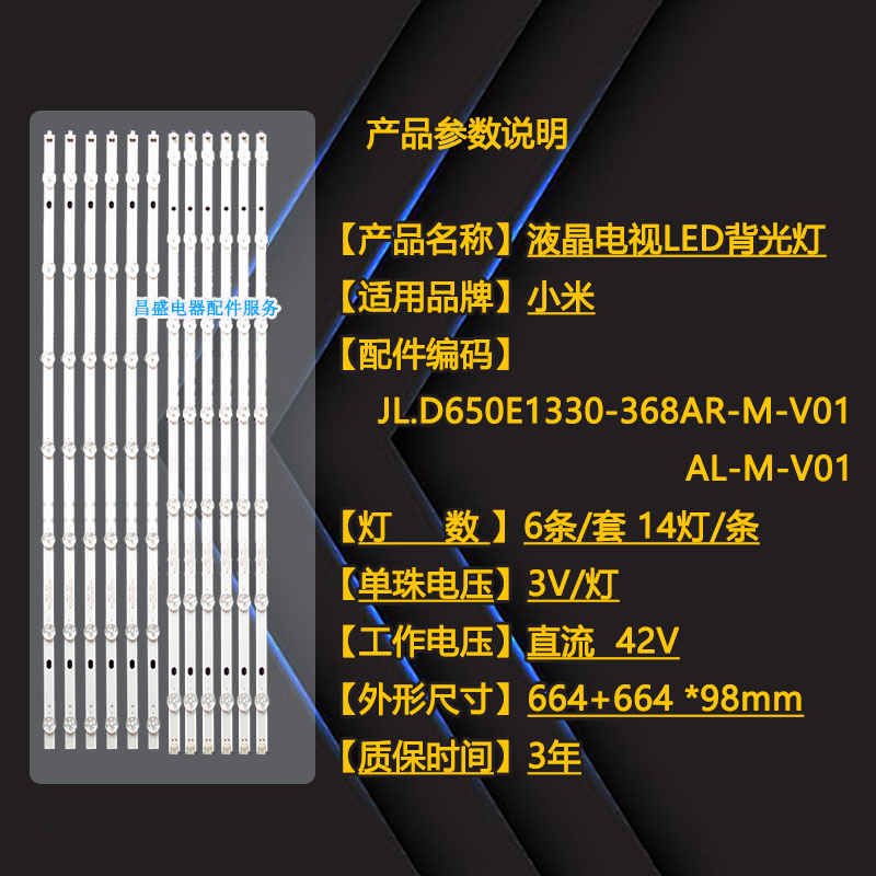 适用 小米L65M5-AD灯条 MI65T33-6X14-MCPCB-B JL.D650E1330-368 - 昌盛电器配件