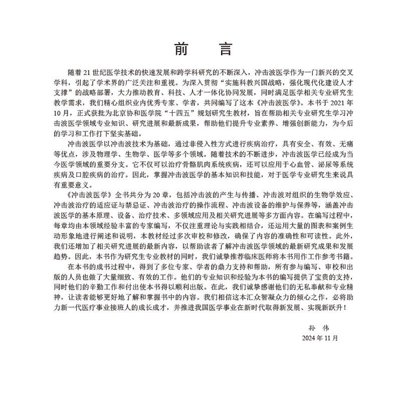 冲击波医学 十四五普通高等教育研究生规划教材 孙伟 内容包含股骨头缺血性坏死 骨关节炎 骨不连与骨折延迟愈合等 科学出版社 - 好友图书专营店