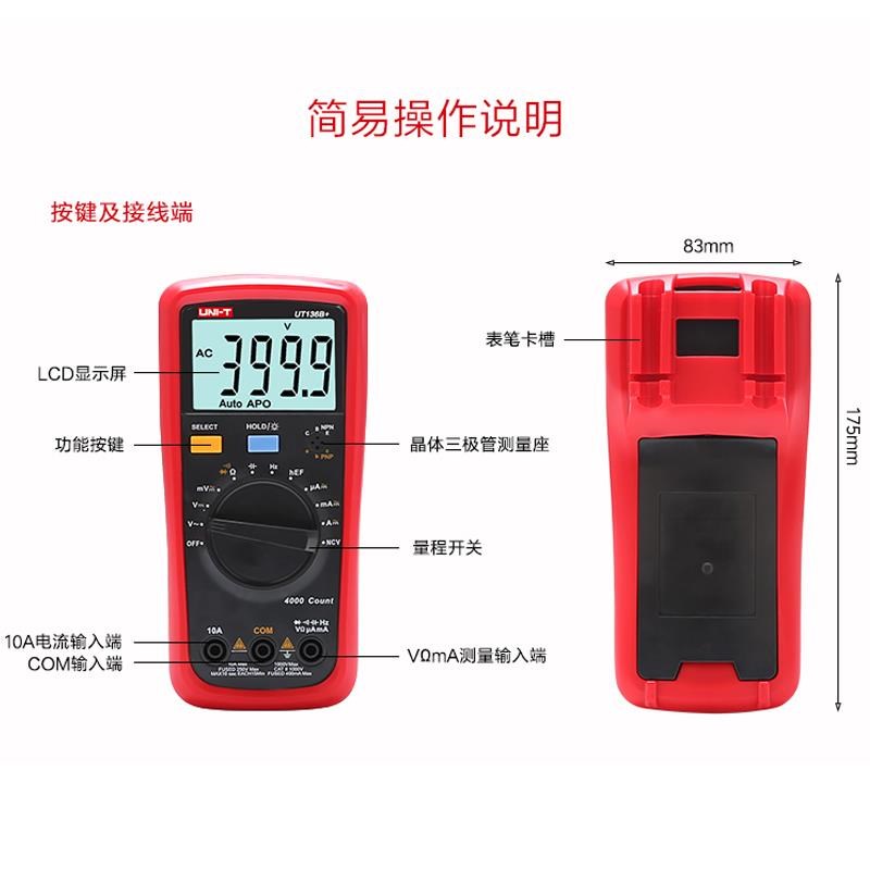 您的位置:他他商城  >   >  优利德UT136B+/C+万用表数字高精度防烧数显表自U动量程袖珍小型