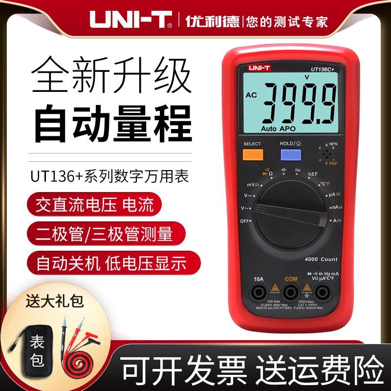 优利德UT136B+/C+万用表数字高精度防烧数显表自U动量程袖珍小型