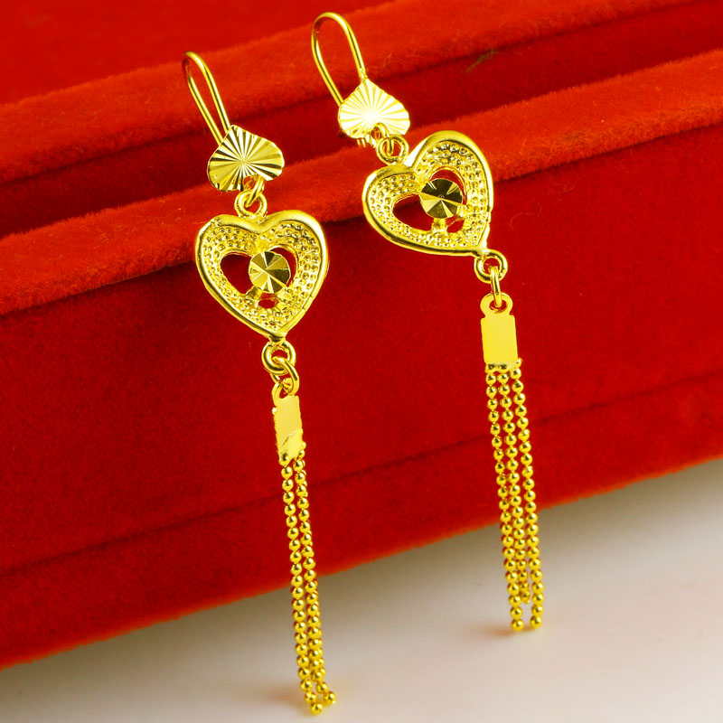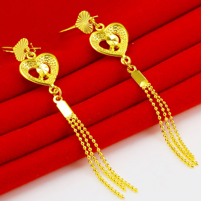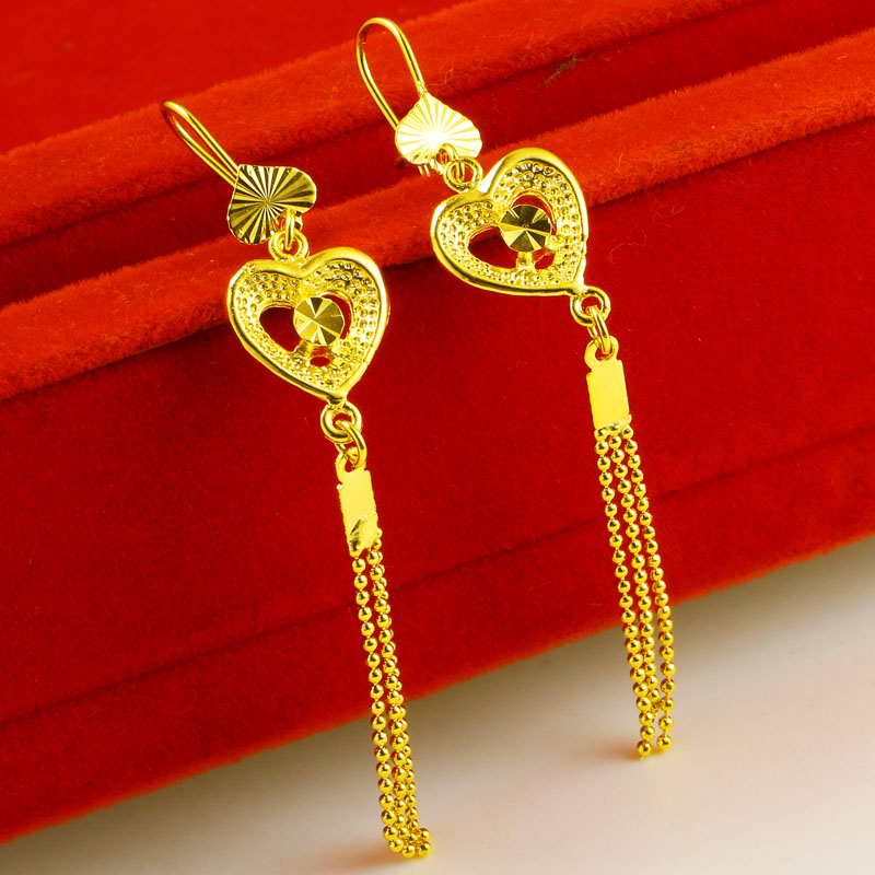 您的位置:他他商城  >  配饰  >  仿真黄金耳环女款爱心耳坠子长款流苏时尚新款9999仿金纯金首饰