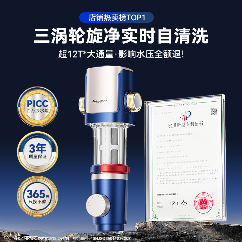 惠尔顿全屋前置过滤器家用反冲洗全铜防爆净水器大通量P0038MAX - Wheelton旗舰店