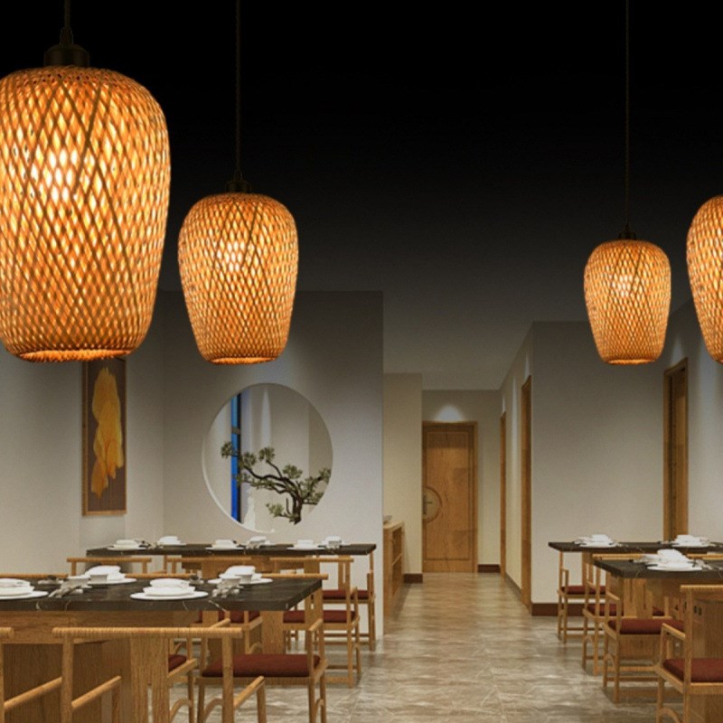 竹艺竹编灯笼新中式简约田园餐厅民宿卧室阳台东南亚复古灯罩吊灯 - 展闯肴实业