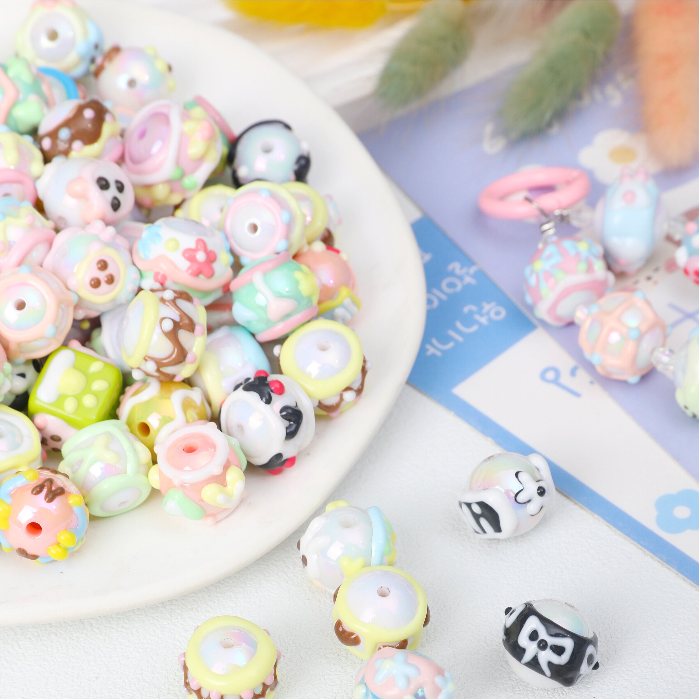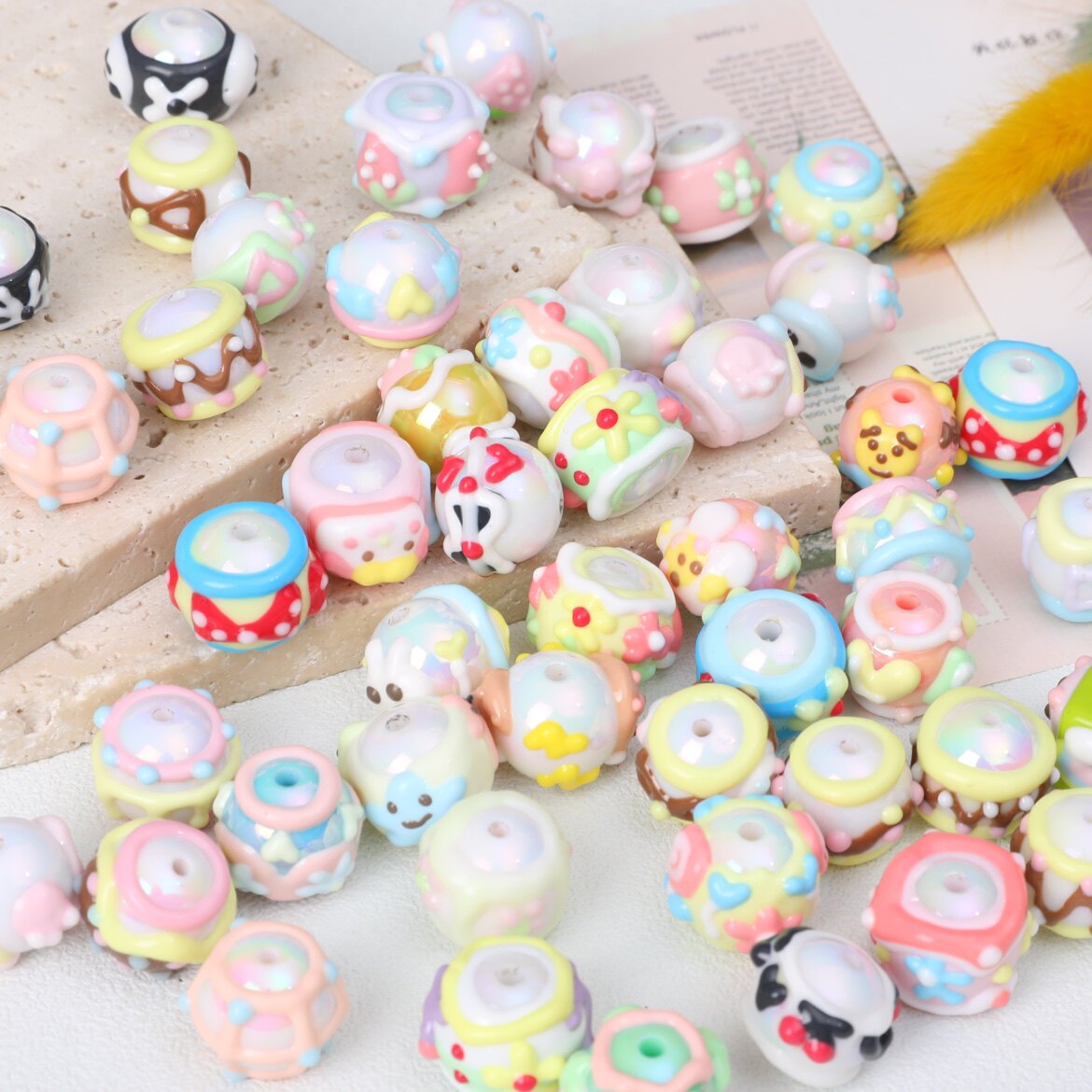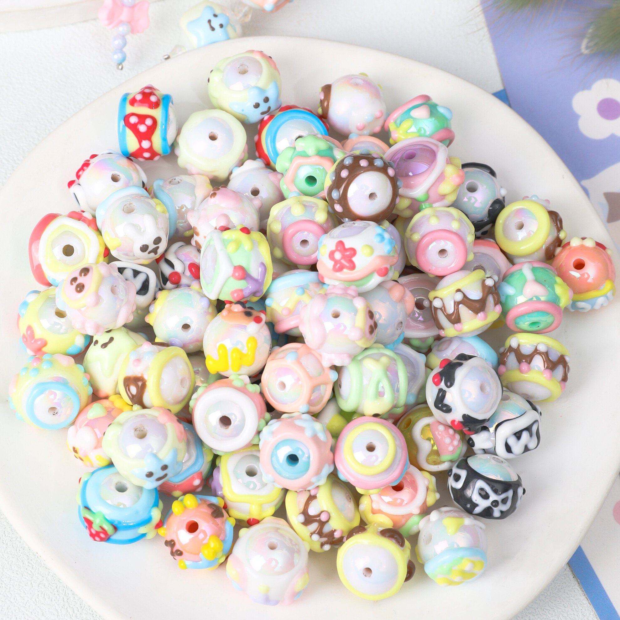 七彩混款手绘珠子奶油百搭 DIY串珠材料手机链条车挂链条散珠配件 - 无恙饰品配件