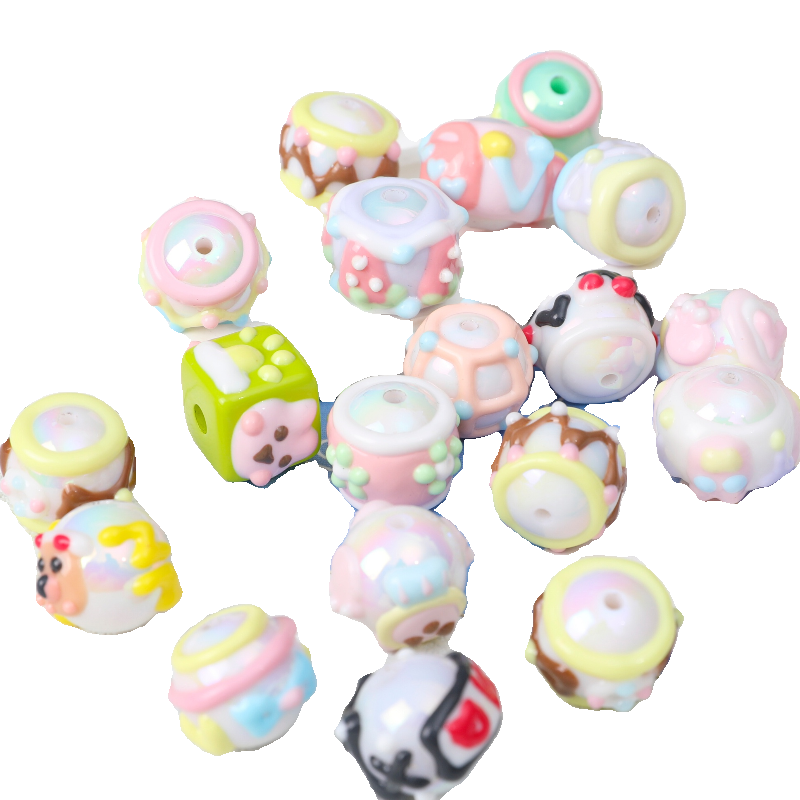 七彩混款手绘珠子奶油百搭 DIY串珠材料手机链条车挂链条散珠配件